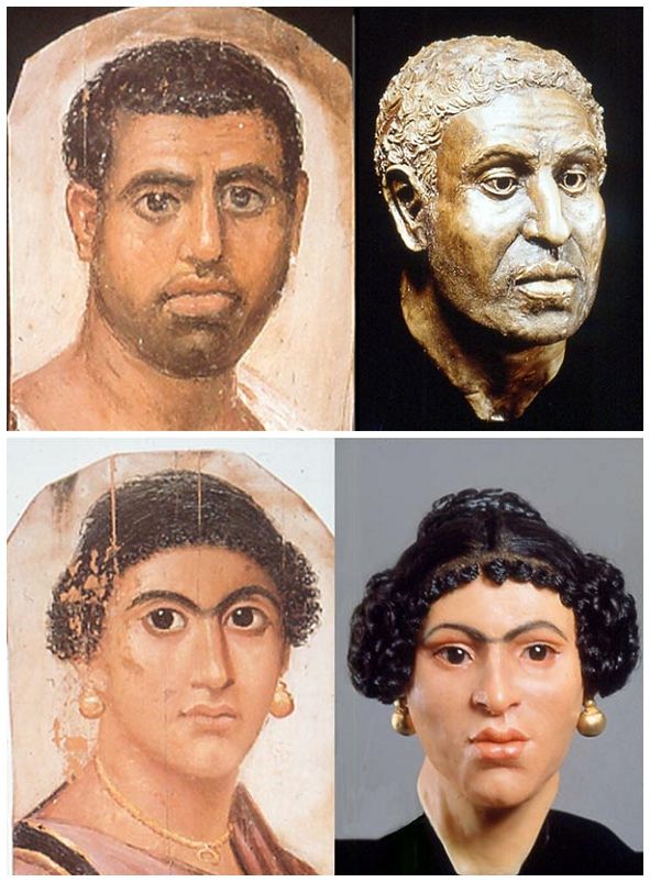 Мужской портрет 80-100 гг., женкий портрет 55-70 гг, (оба из Hawara, ныне Британский муей).