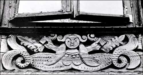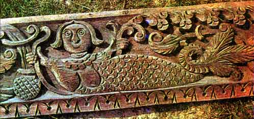 Такие изображения мужчин-русалок с усами и трубками во рту часто встречается в деревянной резьбе, украшающей дома.