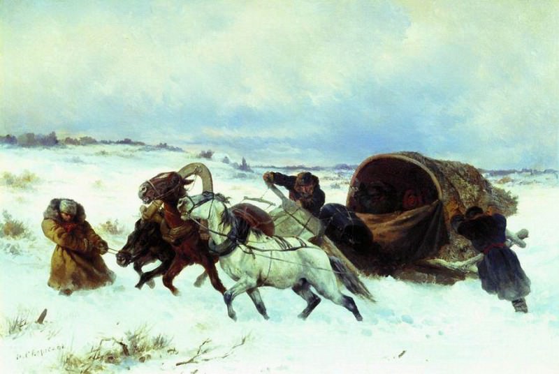 Тройка зимой. Картина Н. Сверчкова. 1881